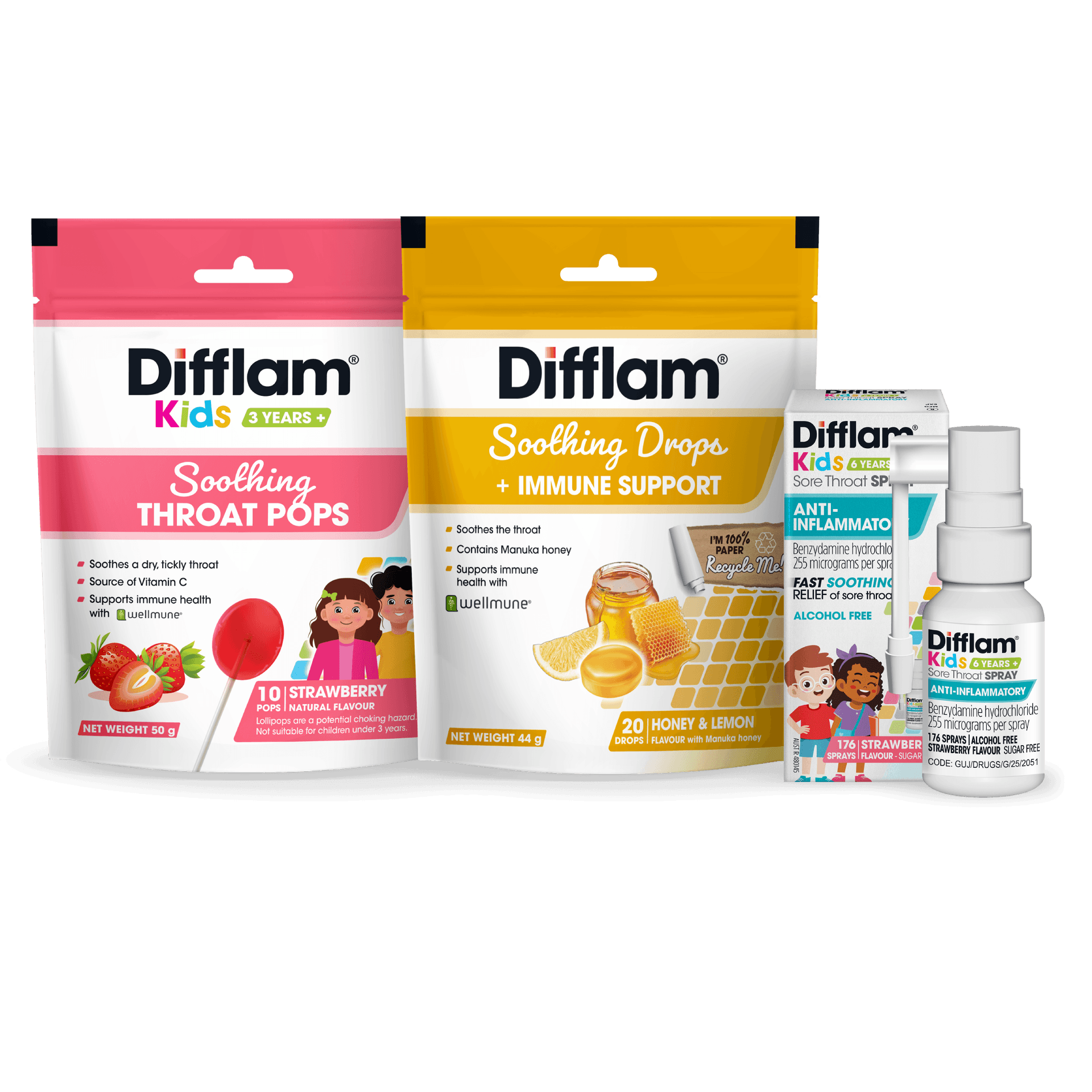 Difflam sore throat sprays are anti-inflammatory and provide fast soothing relief by reducing inflammation. For an extra sore throat, try Difflam Plus Anaesthetic Sore Throat Spray.