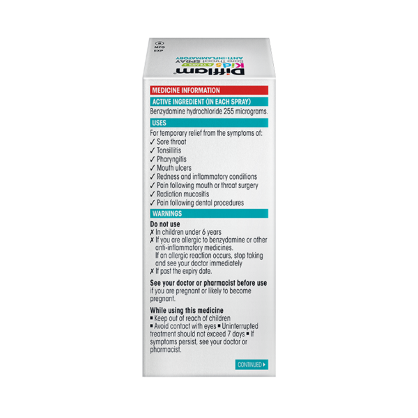 Difflam Kids 6 Years + Sore Throat Spray offers fast, targeted relief from sore throats.